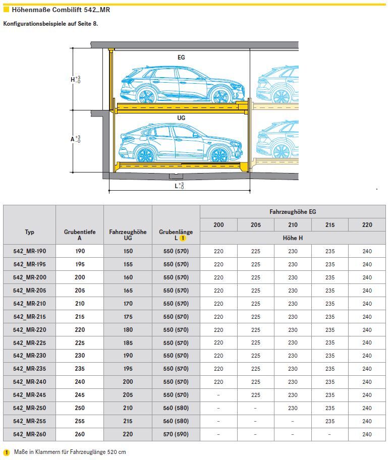 - Hohe Nutzerfreundlichkeit und Parkkomfort. Alle neuen Combilifte sind extrem flexibel, da wir alle 5 cm eine neue Höhe schaffen können, um Fahrzeuge einer Höhe von 150 cm bis 220 cm zu parken.