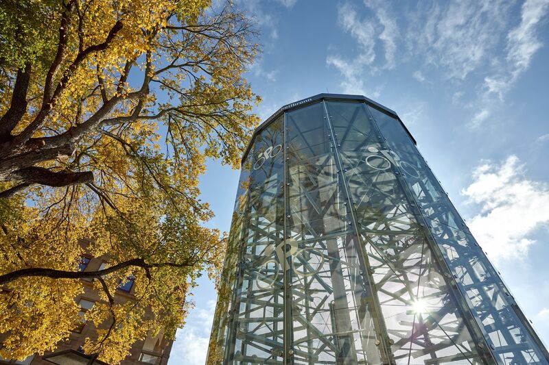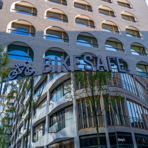 Además, nuestras soluciones de aparcamiento pueden adaptarse perfectamente a su entorno e integrarse en el paisaje urbano gracias a sus fachadas personalizables. Un ejemplo destacado es el proyecto «AM TACHELES» de Berlín, en el que se integró una Bikesafe para bicicletas como variante del hueco. La zona de entrega tiene una fachada de espejos, lo que la convierte en el punto fuerte del diseño