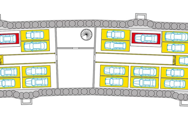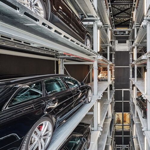 Cuando las «ideas de aparcamiento» crecen hacia el cielo, lo más probable es que se trate de uno de estos sistemas de aparcamiento controlado automáticamente. Basado en el principio de una estantería, los vehículos se aparcan en compartimentos a derecha e izquierda. Así se crea una torre, un hueco o una combinación de torre y hueco, en función de los requisitos de cada proyecto. Los modelos Parksafe de WÖHR disponen de un elevador central que transporta los coches de forma totalmente automática a un compartimento de estantería libre, donde se almacenan de forma segura para evitar robos y actos vandálicos.