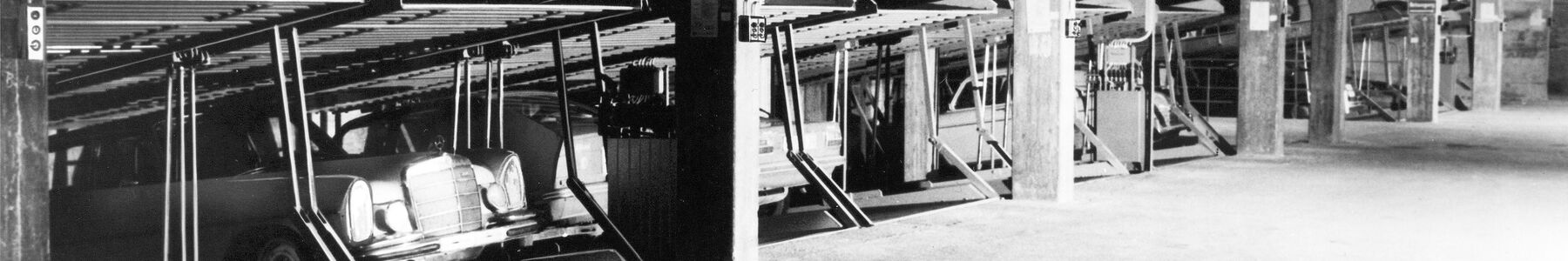 En 1962 se instaló este tipo de sistema, duplicando el número de estacionamientos, en el aparcamiento subterraneo de la calle Zittel, en Munich.