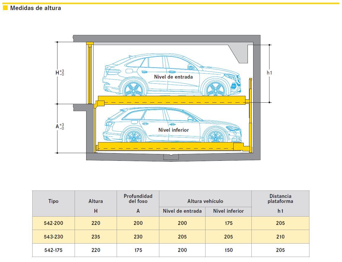 - Permite estacionar SUV en plazas superiores con una altura restringida a 220 cm.