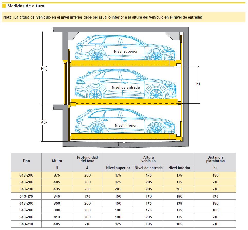 Combilift 543, el sistema que optimiza y compacta el espacio. Con tres niveles incluyendo foso. El acceso a todas las plazas se realiza siempre por el nivel de circulación.