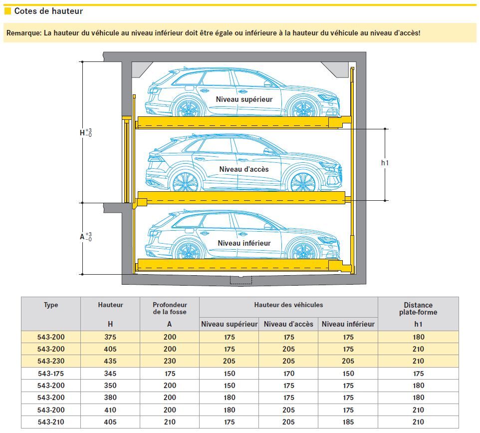 - largeurs de places de stationnement jusqu'à 300 cm et charge par place de 2000 kg à 2600 kg