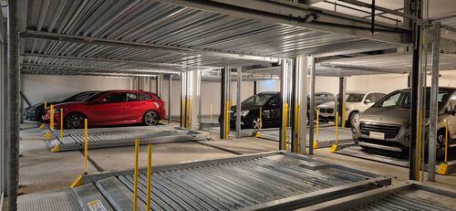 Le Combilift 551 permet un stationnement indépendant sur 2 niveaux de parking sans fosse. Grâce à la technique de casse-tête, toutes les places sont directement accessibles par le niveau d'entrée.